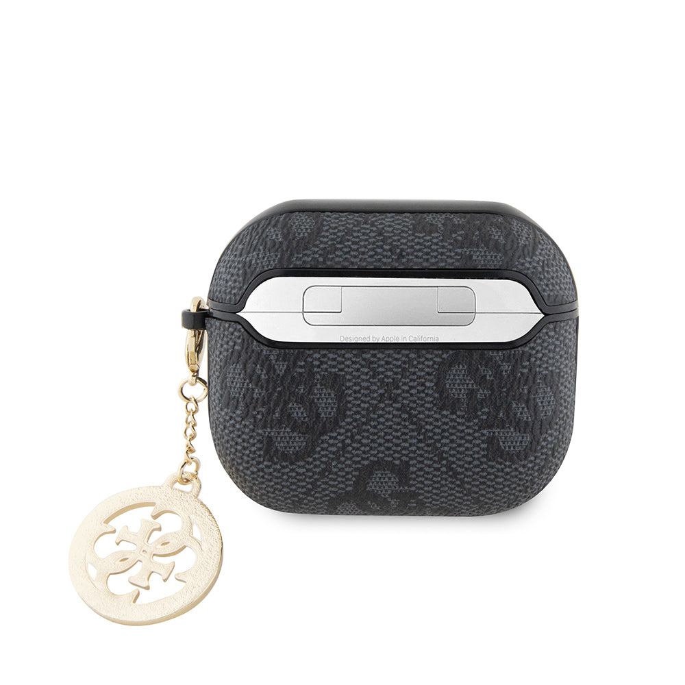 Apple Airpods 3. Nesil Kılıf Guess Orjinal Lisanslı 4G Desenli Taşlı 4G Süs Zincirli Kapak Siyah
