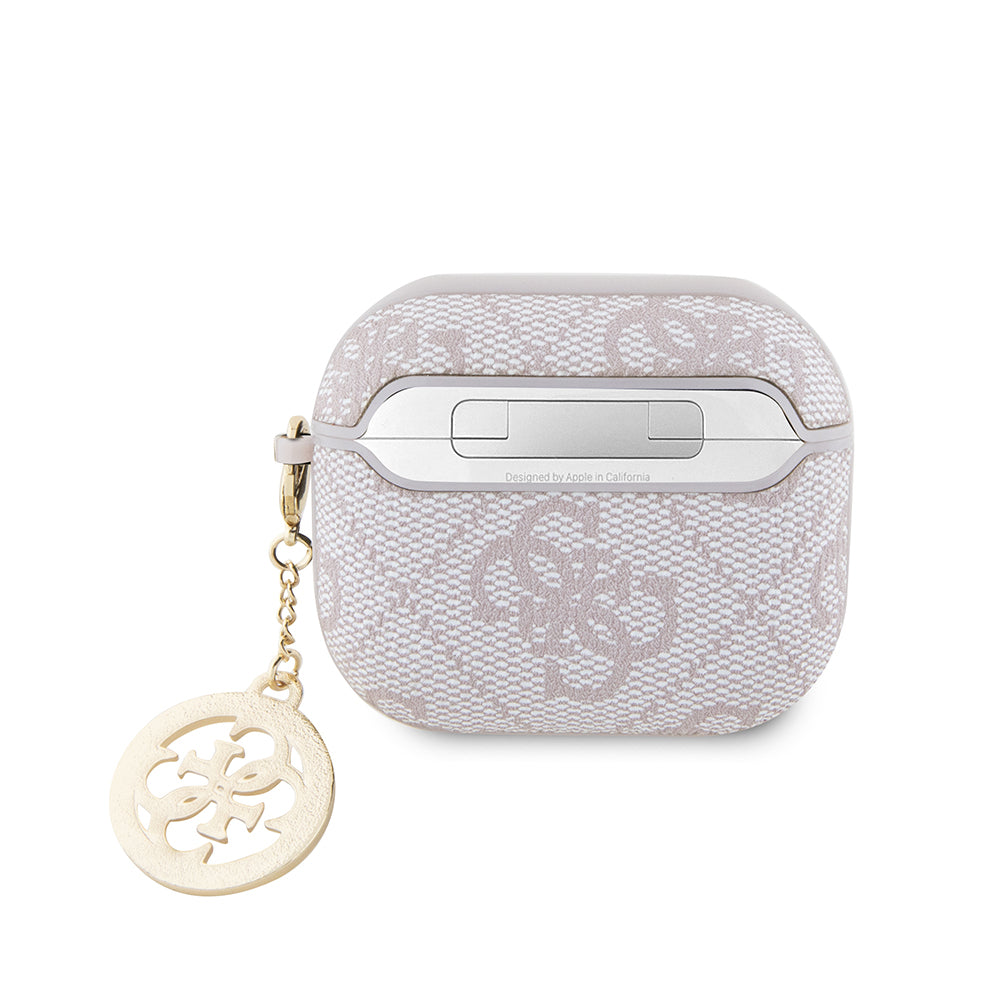Apple Airpods 3. Nesil Kılıf Guess Orjinal Lisanslı 4G Desenli Taşlı 4G Süs Zincirli Kapak Pembe