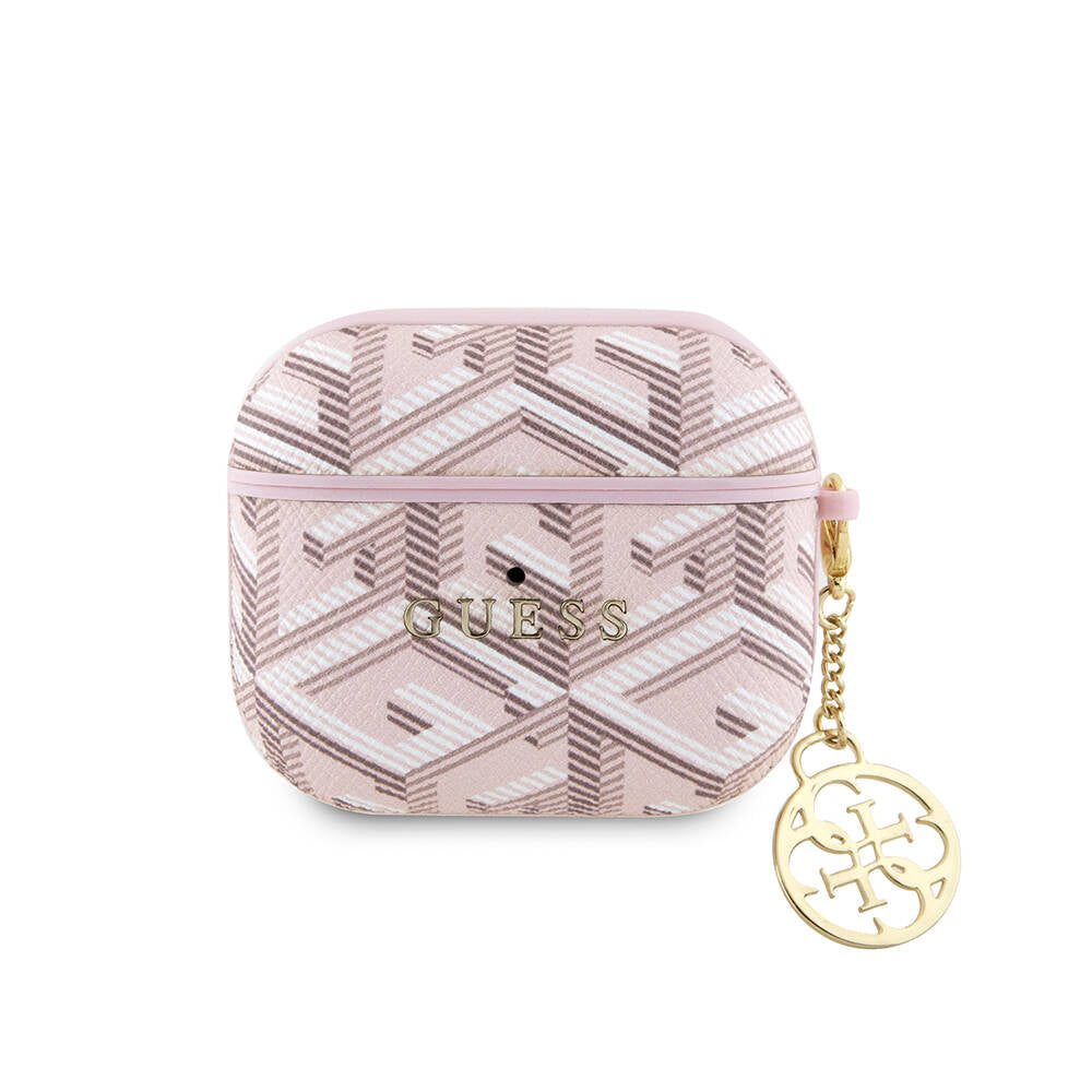 Apple Airpods 3. Nesil Kılıf Guess Orjinal Lisanslı G Cube Desenli 4G Süs Zincirli Kapak Pembe