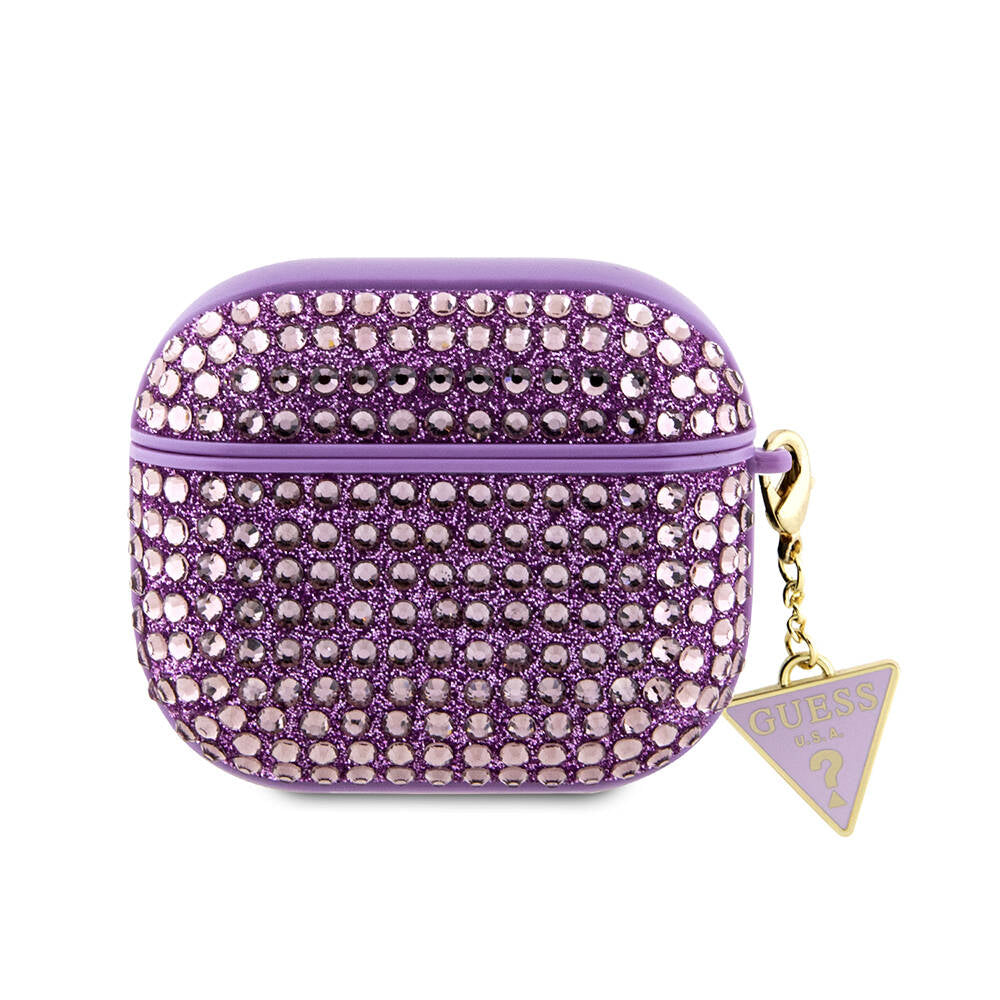 Airpods 3. Nesil Kılıf Guess Orjinal Lisanslı Parıltılı Taş Kaplamalı Üçgen Logo Süs Zincirli Kapak