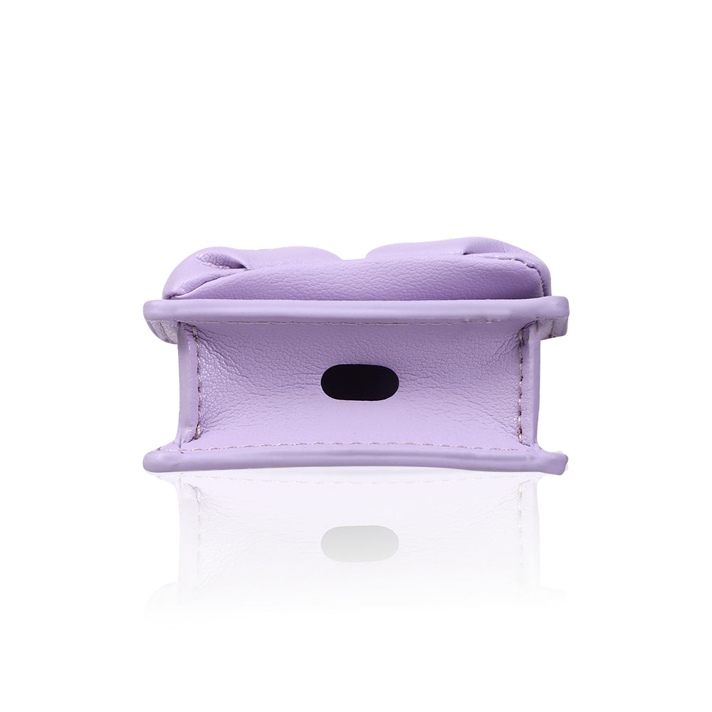 Apple Airpods 4 Kılıf PU Deri Çanta Tasarımlı Taşlı Pynana Sugar Cube Serisi Kapak Mor