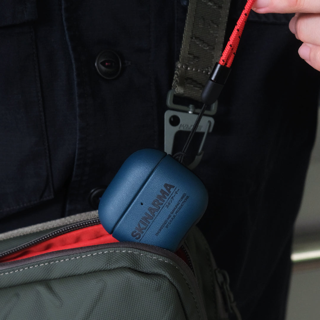 Apple Airpods 4 Kılıf Skinarma PU Deri Tasarım Spunk Kılıf Mavi