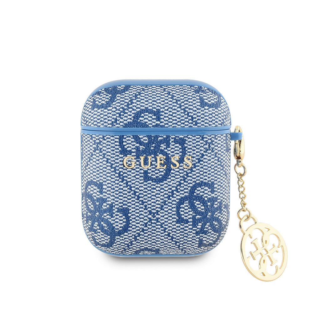 Apple Airpods Kılıf Guess Orjinal Lisanslı 4G Desenli Metal Script Logolu 4G Charm PU Deri Kapak Mavi