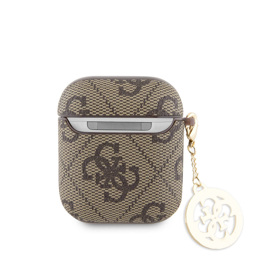 Apple Airpods Kılıf Guess Orjinal Lisanslı 4G Desenli Taşlı 4G Süs Zincirli Kapak Kahverengi