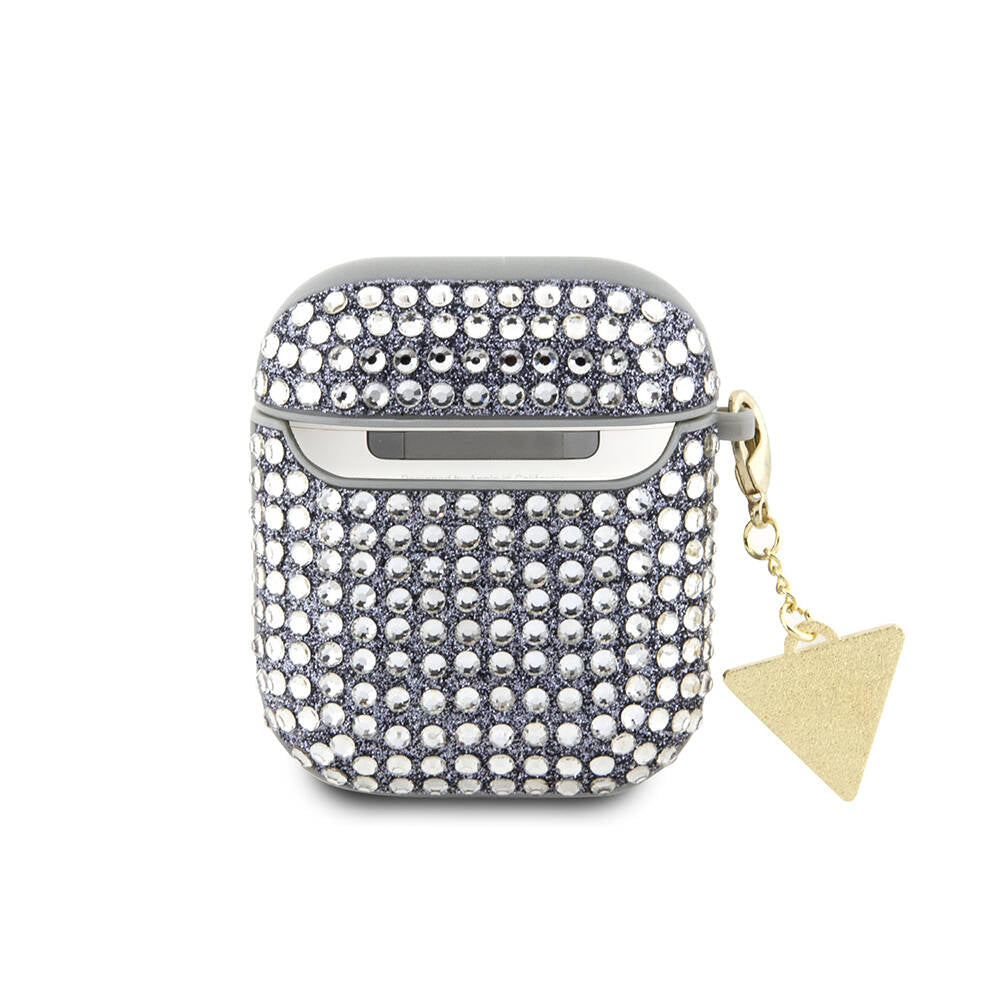 Apple Airpods Kılıf Guess Orjinal Lisanslı Parıltılı Taş Kaplamalı Üçgen Logo Süs Zincirli Kapak