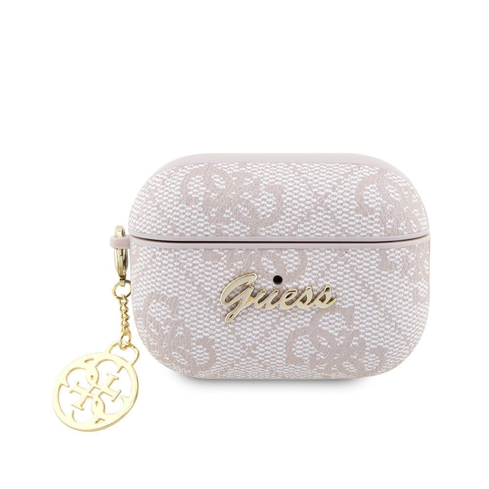 Airpods Pro 2 Kılıf Guess Orjinal Lisanslı 4G Desenli Metal Script Logolu 4G Charm PU Deri Kapak