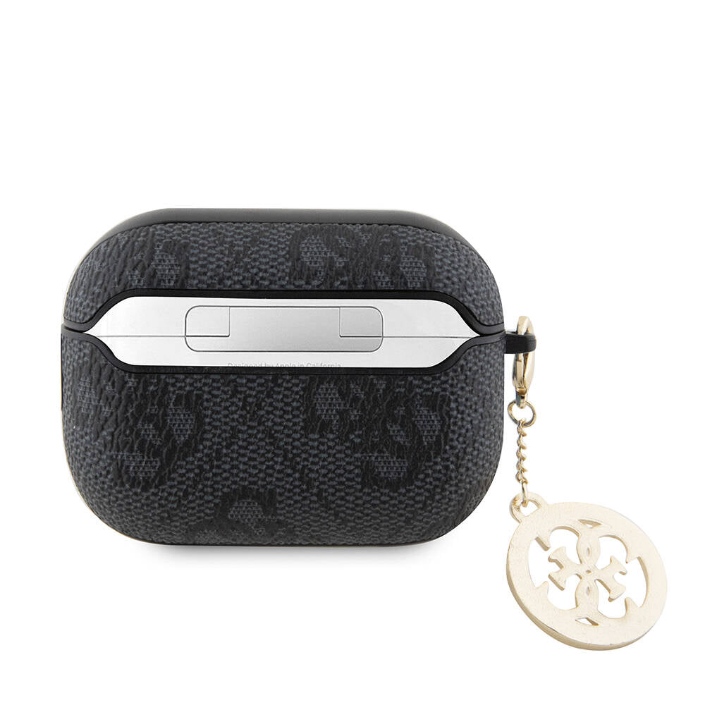 Apple Airpods Pro 2 Kılıf Guess Orjinal Lisanslı 4G Desenli Taşlı 4G Süs Zincirli Kapak Siyah