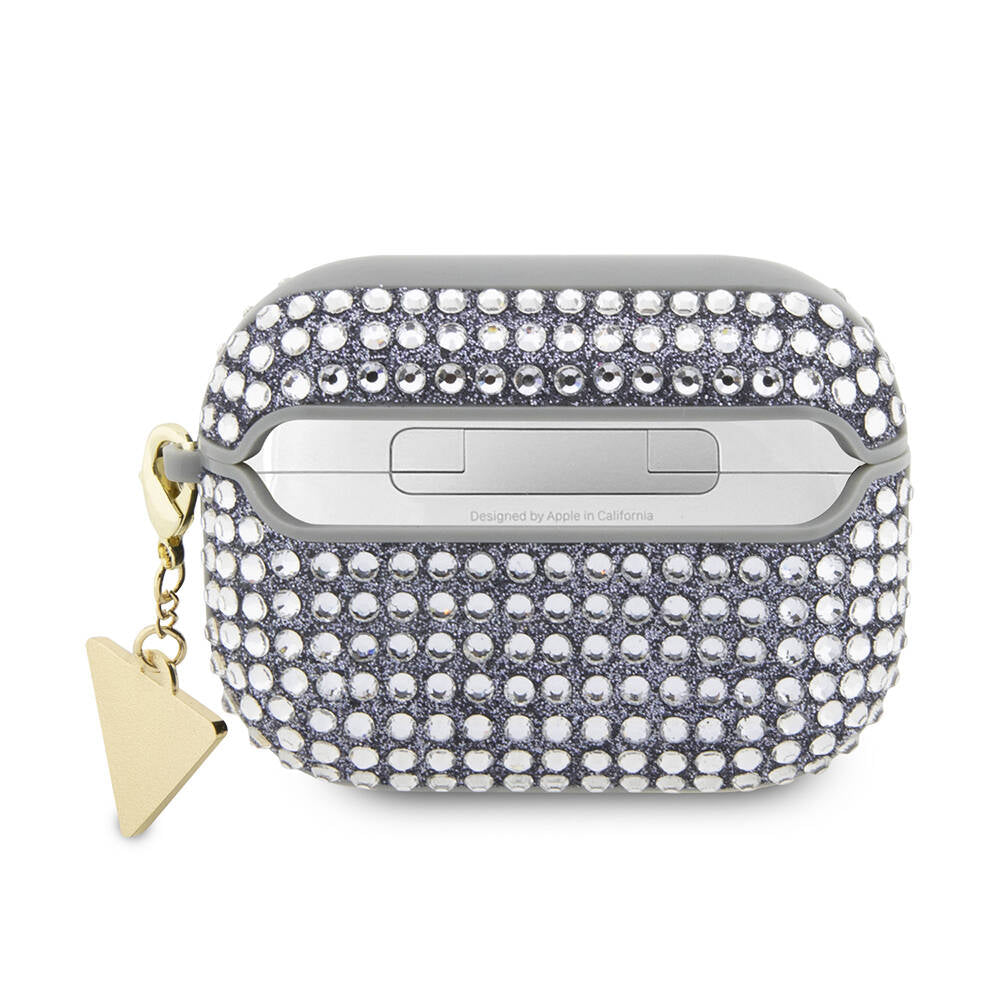 Apple Airpods Pro 2 Kılıf Guess Orjinal Lisanslı Parıltılı Taş Kaplamalı Üçgen Logo Süs Zincirli Kapak