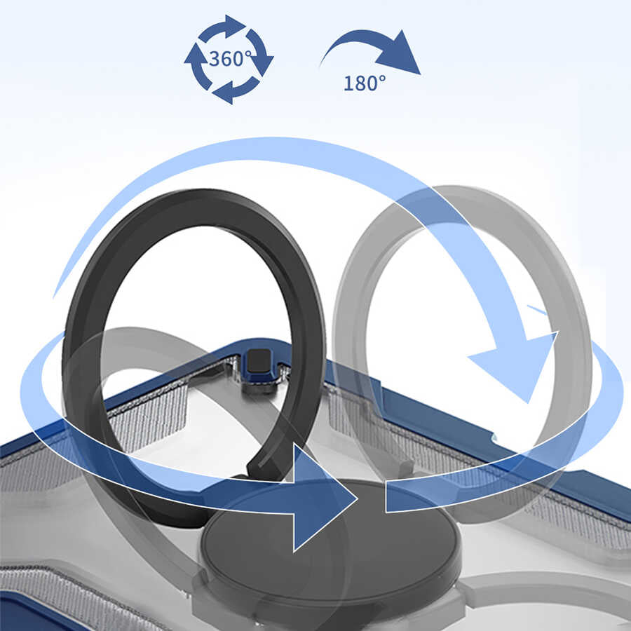 180 derece açılabilen ve 360 derece dönebilen yüzüklü stand dizaynı ile kullanım kolaylığı sunar.