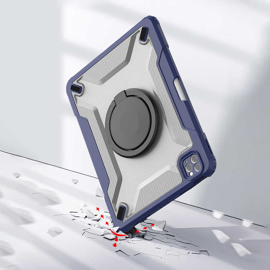 Apple iPad Pro 11 2021 (3.Nesil) Wiwu Mecha Dönebilen Standlı Tablet Kılıfı Mavi