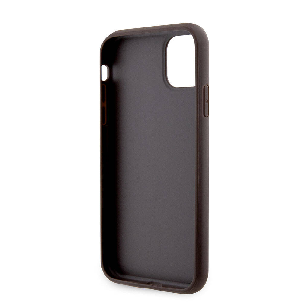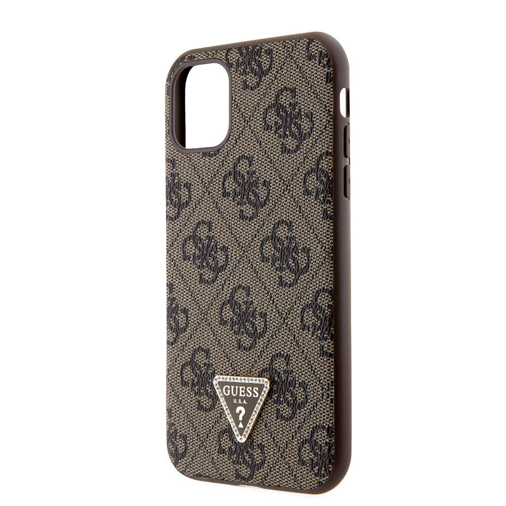 Apple iPhone 11 Kılıf Guess Orjinal Lisanslı PU Deri Taşlı Üçgen Logo 4G Desenli Kapak Kahverengi
