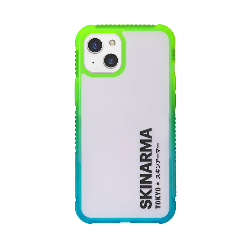 Apple iPhone 13 Kılıf Şeffaf Airbag Tasarımlı Skinarma Hade Kapak Mavi-Yeşil