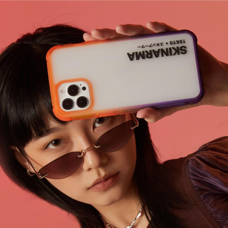 Apple iPhone 13 Kılıf Şeffaf Airbag Tasarımlı Skinarma Hade Kapak Mor-Turuncu