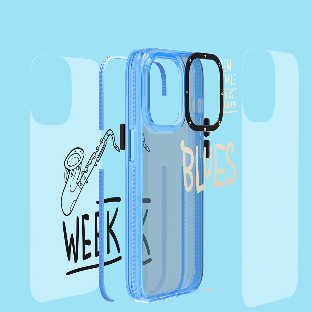 Apple iPhone 13 Kılıf Şeffaf Renkli Yazı Temalı Tasarım YoungKit Jazz Serisi Kapak Siyah