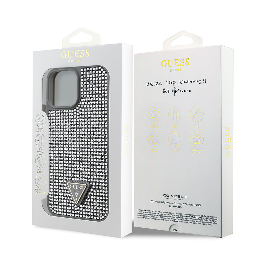 Apple iPhone 13 Pro Max Kılıf Guess Orjinal Lisanslı Taşlı Arka Yüzey Üçgen Logolu Kapak