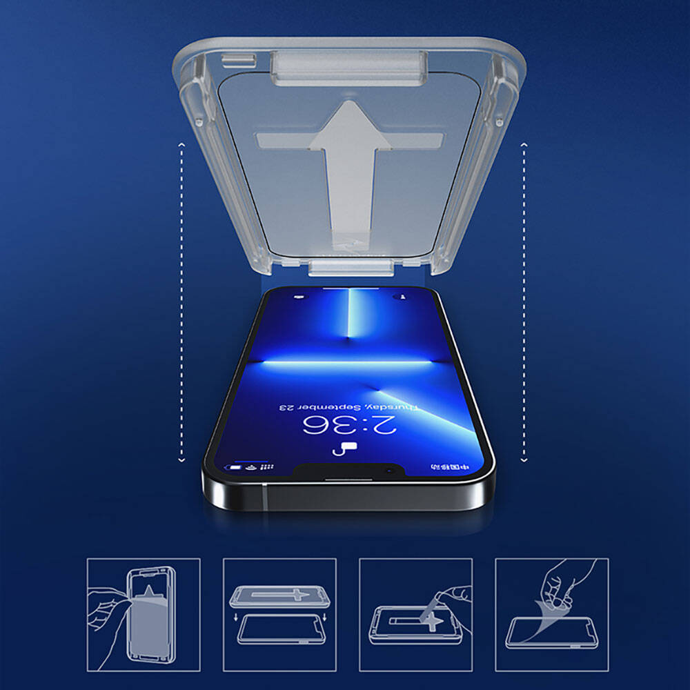 Apple iPhone 13 Pro Recci RSP-A10 HD Temperli Cam Ekran Koruyucu + Kolay Uygulama Aparatlı