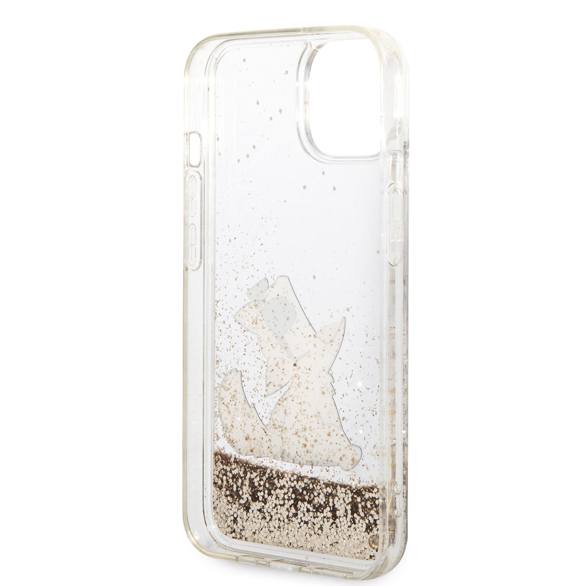 Apple iPhone 14 Kılıf Karl Lagerfeld Sıvılı Simli Choupette Dizayn Kapak Gold