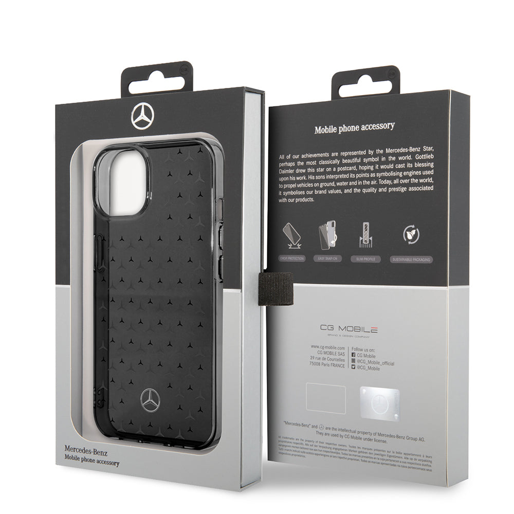 Apple iPhone 14 Kılıf Mercedes Benz Çift Katmanlı Yıldız Desenli Dizayn Kapak Siyah-Gümüş