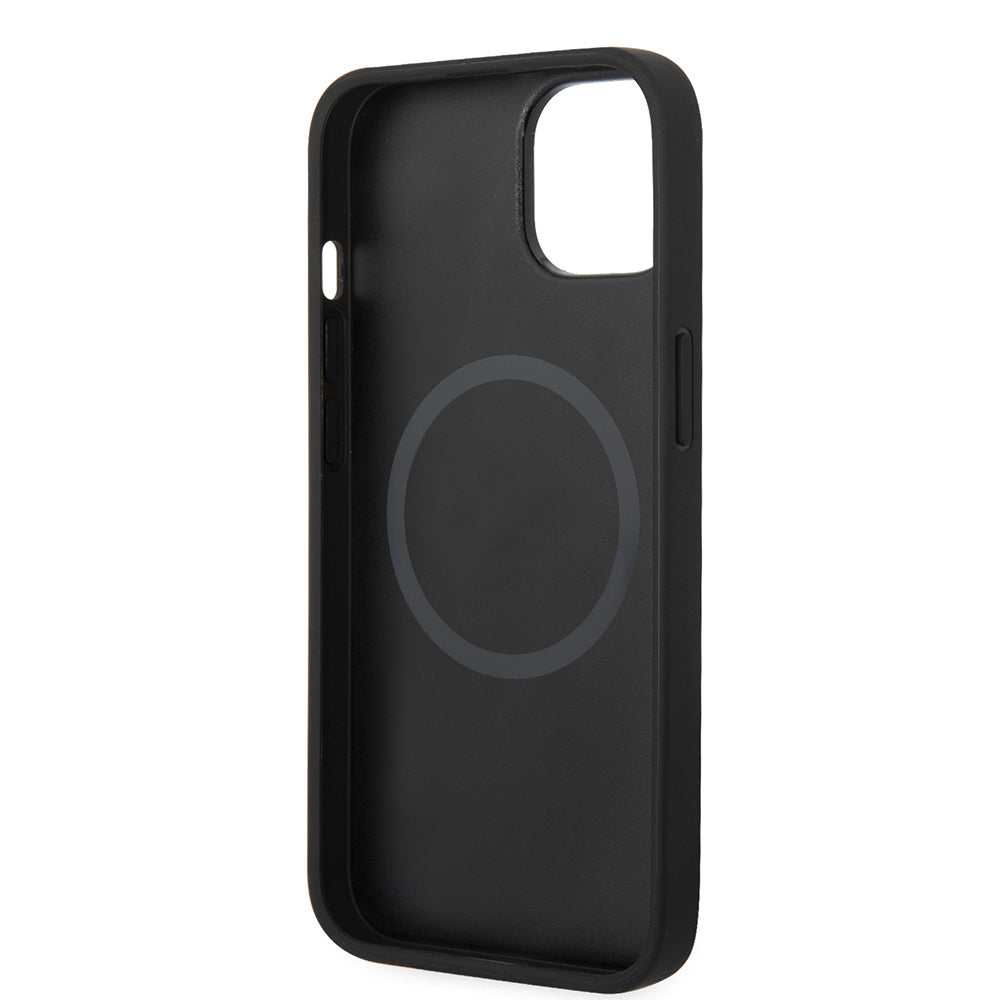 Apple iPhone 14 Plus Kılıf Ferrari Orjinal Lisanslı M-safe Şarj Özellikli Deri Kenarları Damgalı Dizayn Kapak Siyah