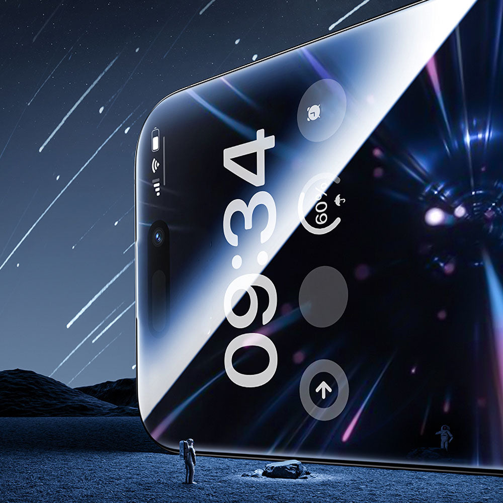 Temperli cam malzemesi ile gerçek tam ekran koruması.