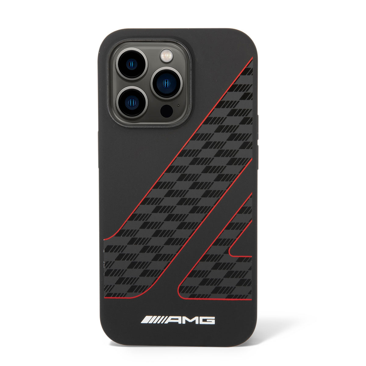 Apple iPhone 14 Pro Kılıf AMG M-safe Şarj Özellikli Liquid Silikon Damalı Bayrak Dizayn Kapak Siyah