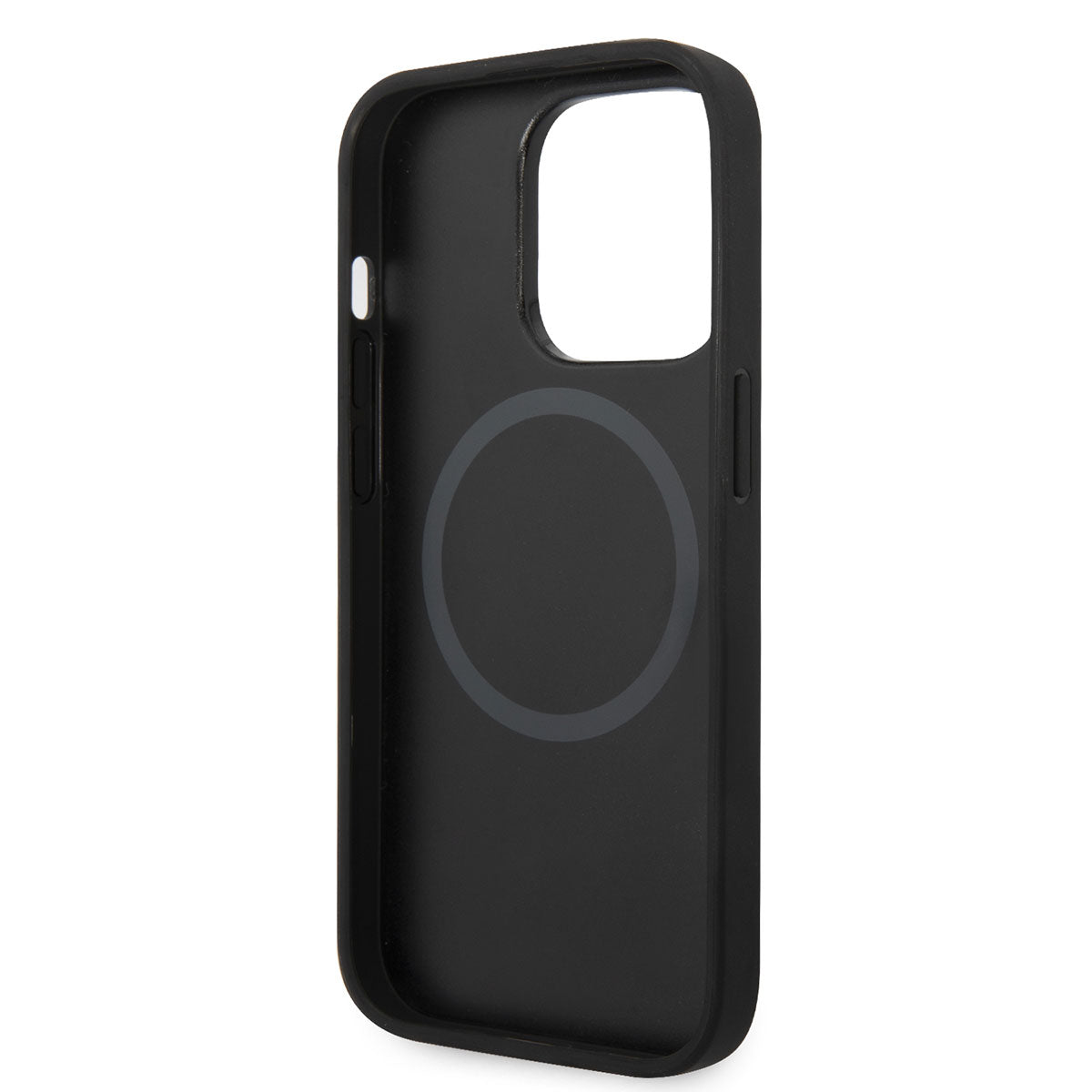 Apple iPhone 14 Pro Kılıf Ferrari M-safe Şarj Özellikli Deri Kenarları Damgalı Dizayn Kapak Siyah
