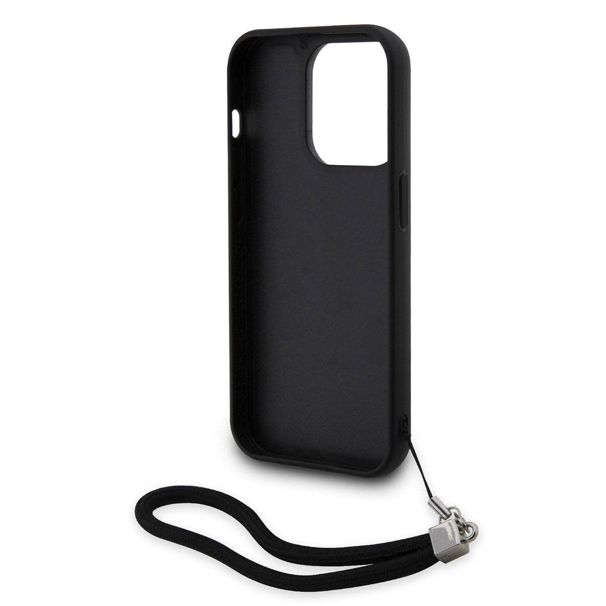 Apple iPhone 14 Pro Kılıf Karl Lagerfeld El Askısı İpli Hareketli Pullu Dizayn Kapak Siyah-Gümüş