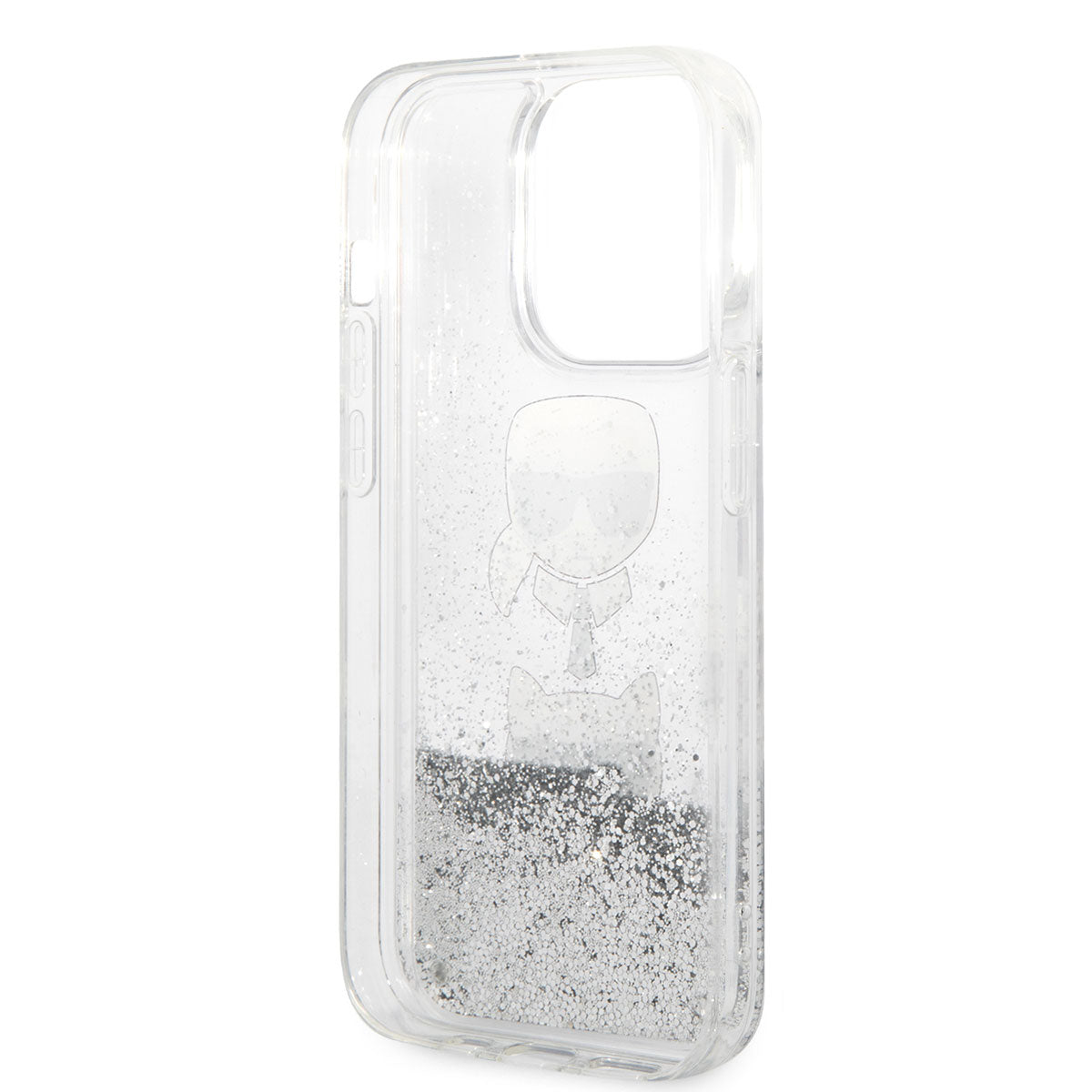 Apple iPhone 14 Pro Kılıf Karl Lagerfeld Sıvılı Simli K&C Head Dizayn Kapak Gümüş