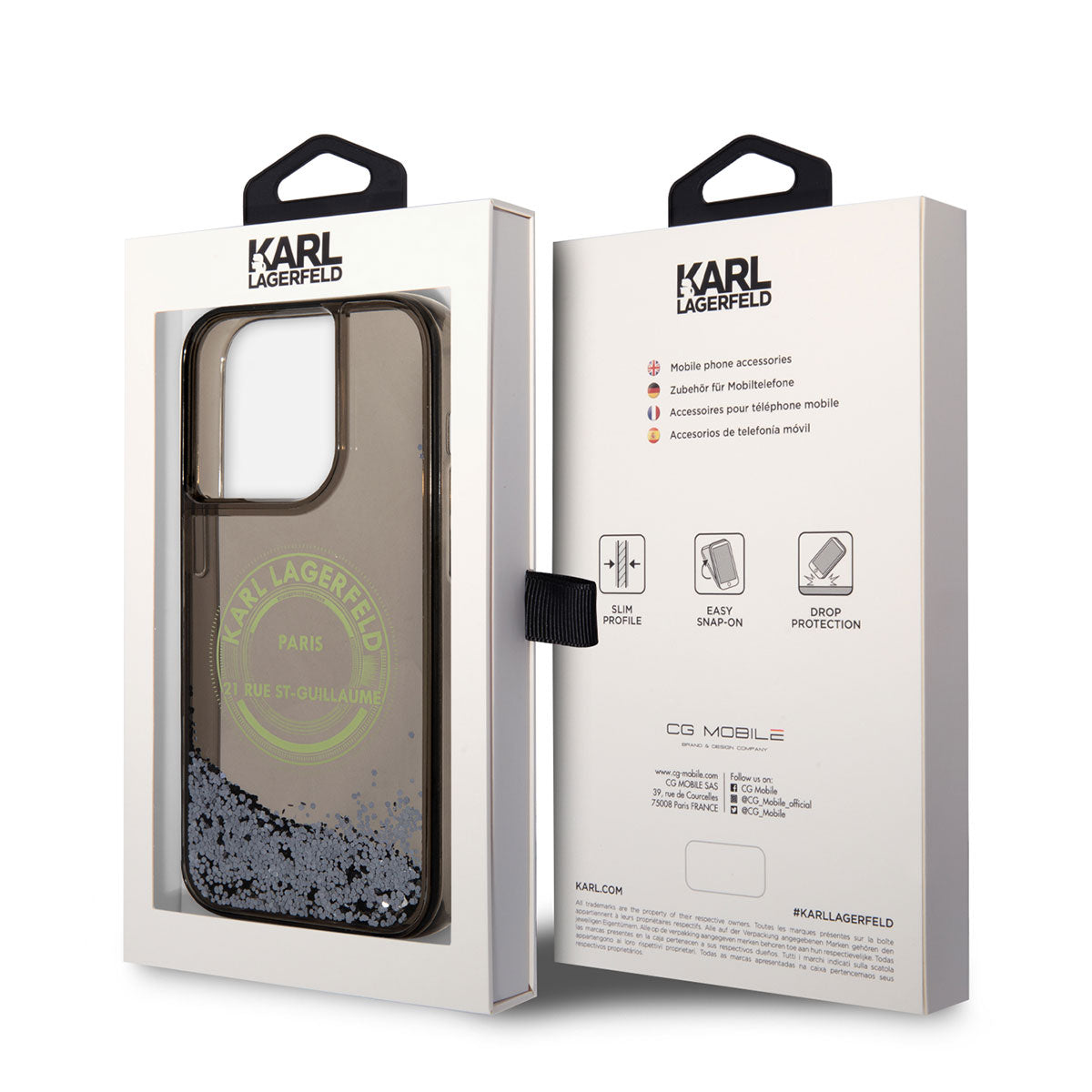 Apple iPhone 14 Pro Kılıf Karl Lagerfeld Sıvılı Simli RSG Dizayn Kapak Siyah