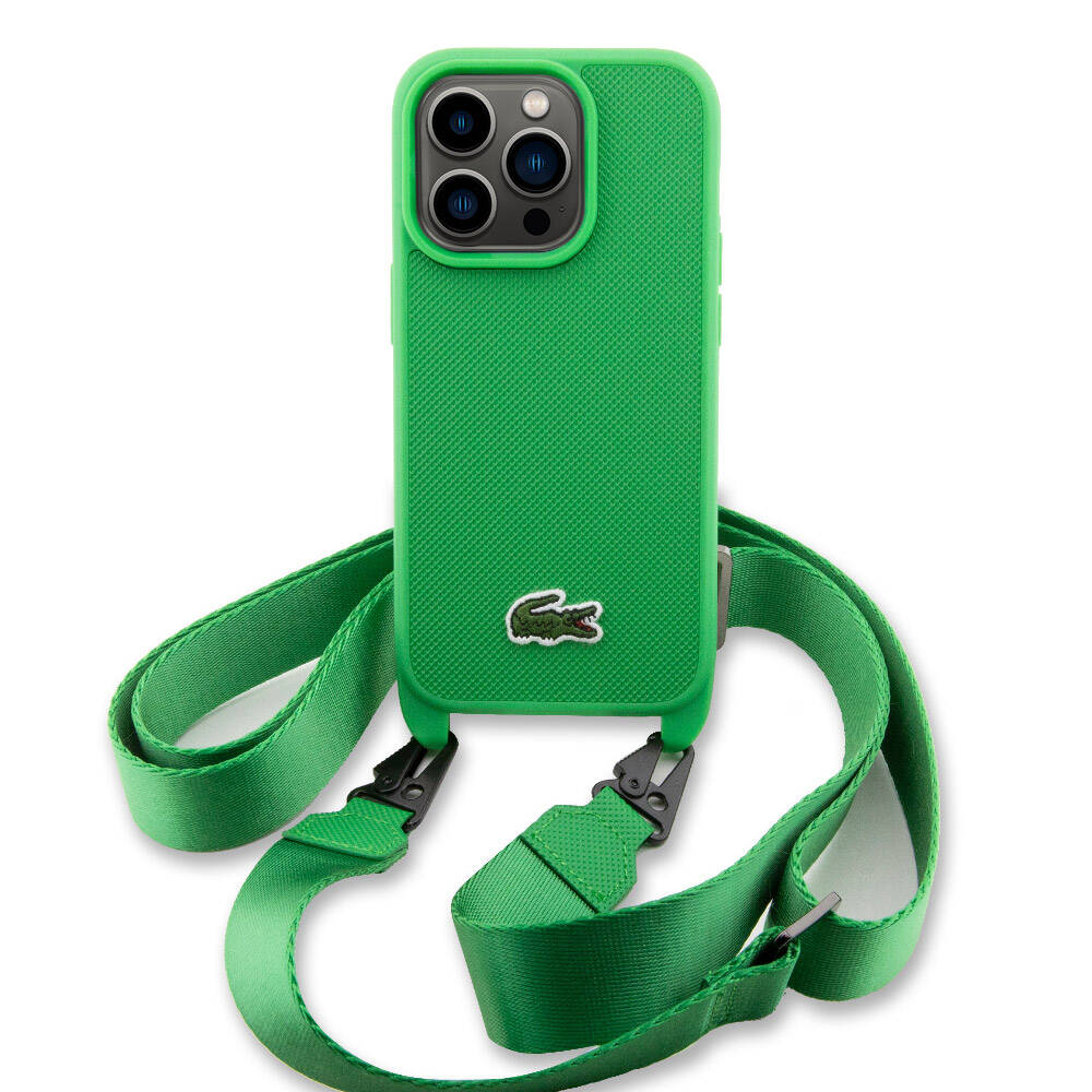 Apple iPhone 14 Pro Kılıf Lacoste Orjinal Lisanslı PU Pike Desenli Arka Yüzey Askılı İkonik Timsah Dokuma Logolu Kapak