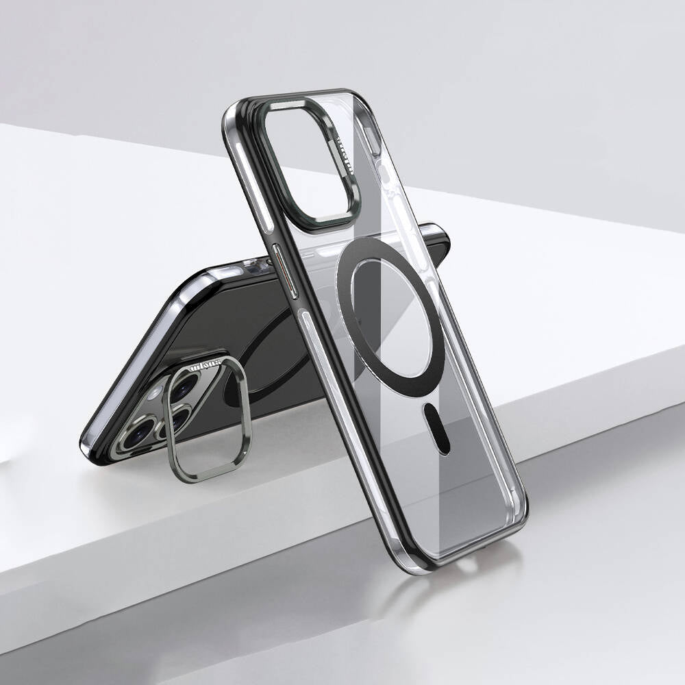 Apple iPhone 14 Pro Kılıf M-safe Şarj Özellikli Wlons Standlı Efsane Kapak Siyah