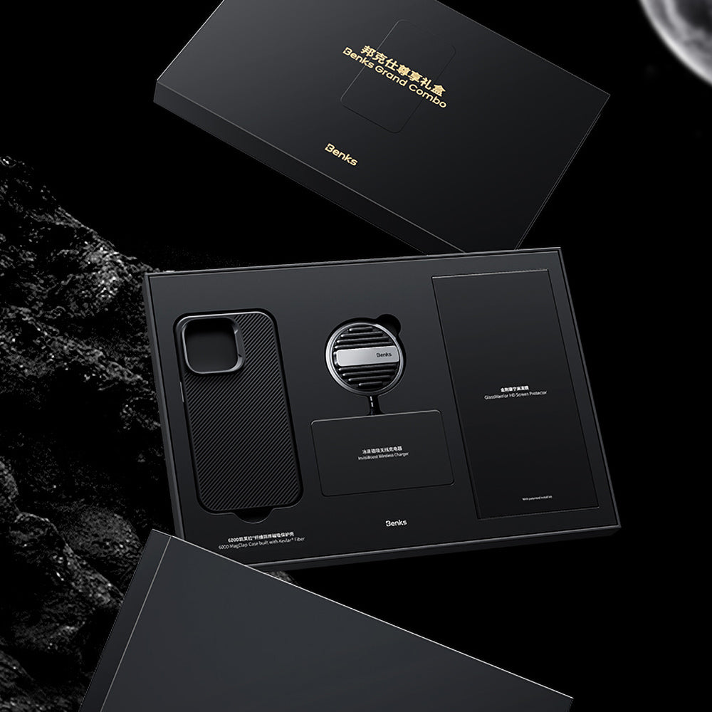 Apple iPhone 14 Pro Max Benks Grand Combo MFM01 3in1 Aksesuar Seti Kılıf-Ekran Koruyucu-Wireless Şarj Aleti Siyah
