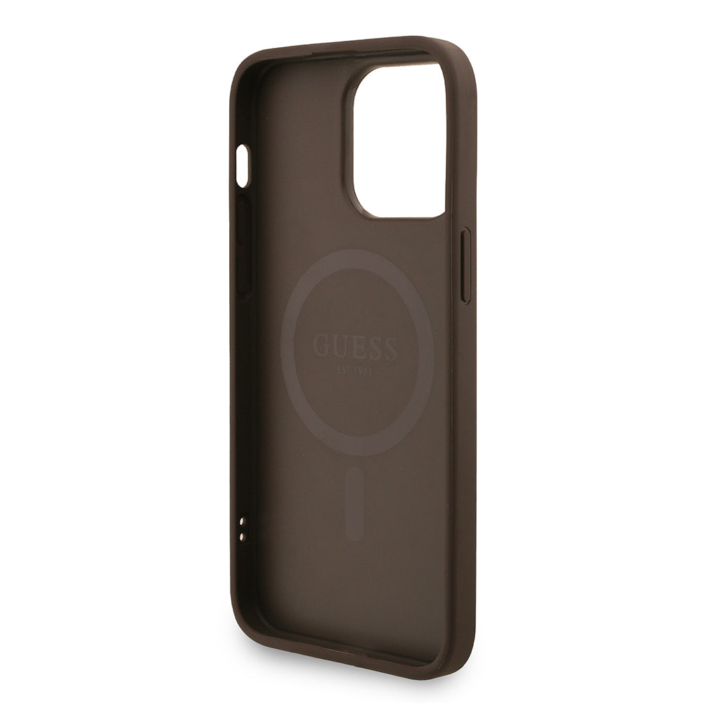 iPhone 14 Pro Max Kılıf Guess Orjinal Lisanslı M-Safe Şarj Özellikli PU Deri Bilek Askı İpli Yazı Logolu Kapak
