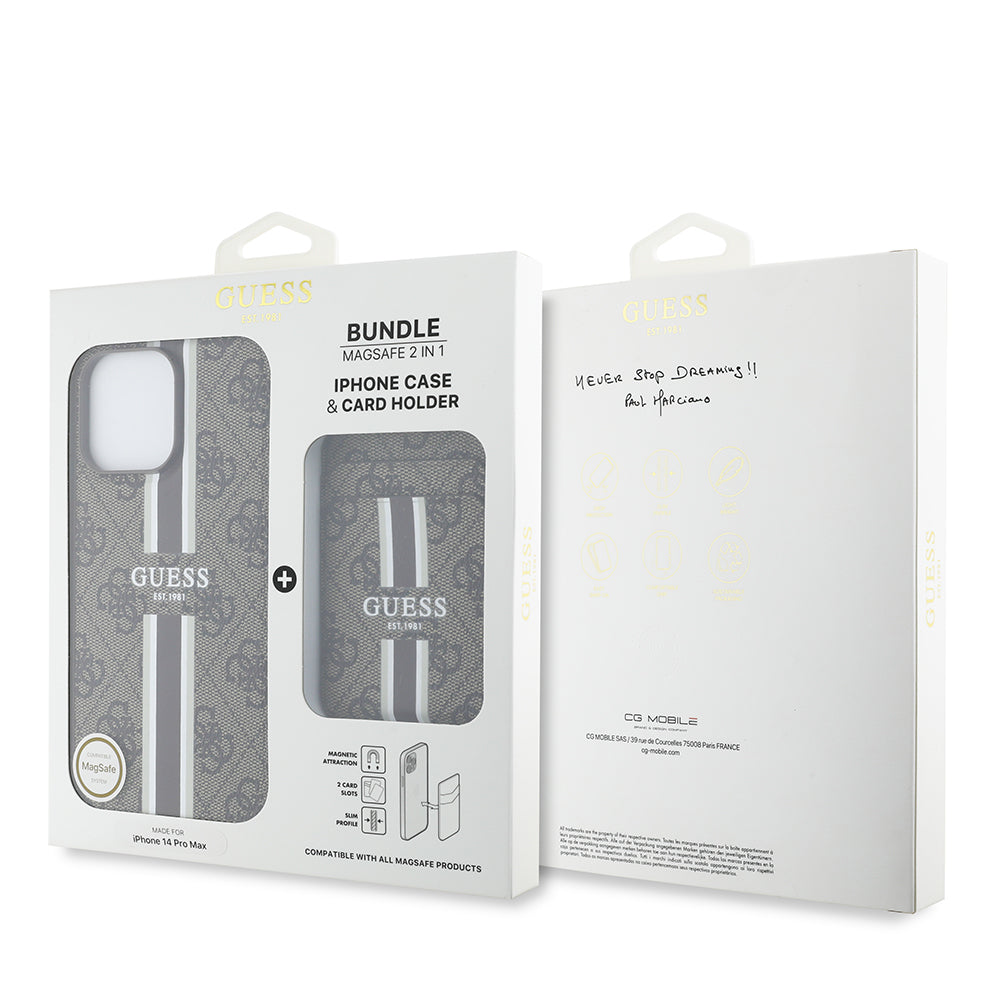iPhone 14 Pro Max Kılıf Guess Orjinal Lisanslı Magsafe Şarj Özellikli 4G Desenli Çizgili Kartlıklı Kapak