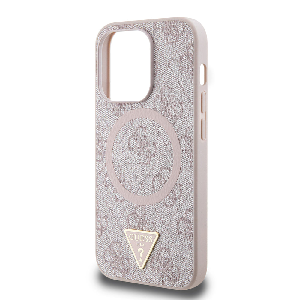 iPhone 14 Pro Max Kılıf Guess Orjinal Lisanslı Magsafe Şarj Özellikli PU Üçgen Logo 4G Desenli Kapak