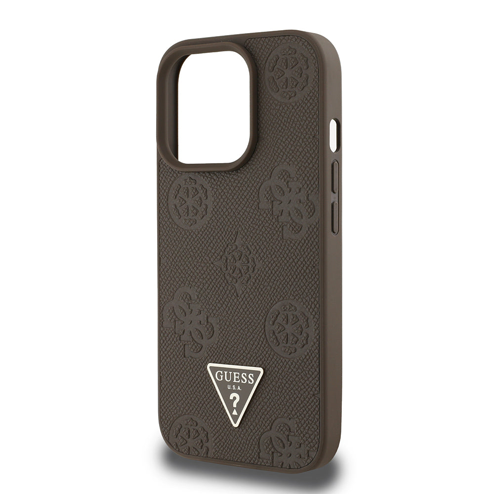 Apple iPhone 14 Pro Max Kılıf Guess Orjinal Lisanslı M-safe Şarj Özellikli Sıcak Baskılı Üçgen Logolu PU Deri Peony Kapak Kahverengi