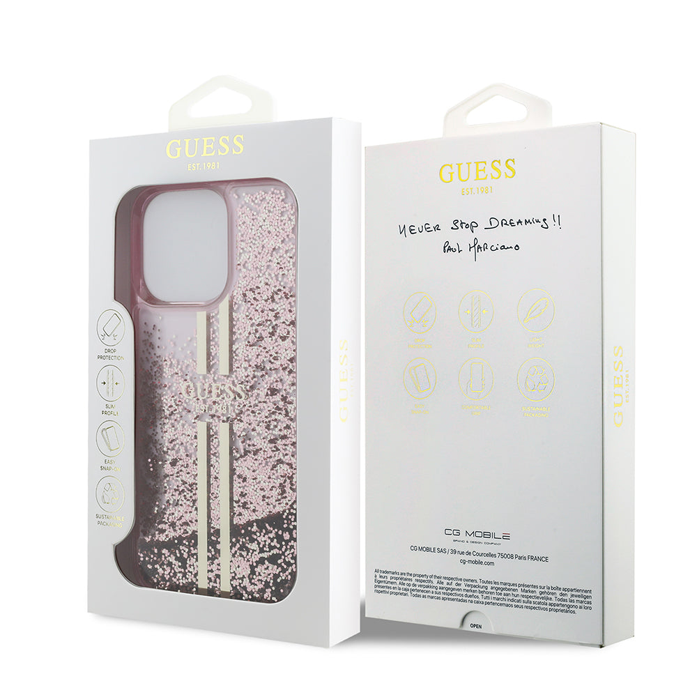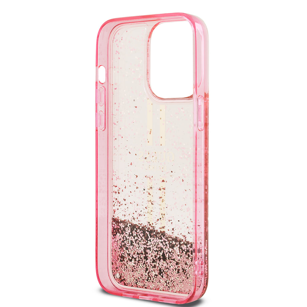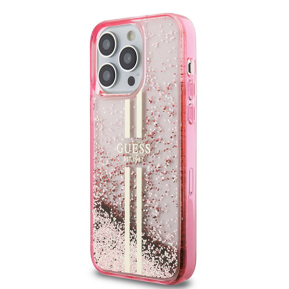 iPhone 14 Pro Max Kılıf Guess Orjinal Lisanslı Transparan Sıvılı Simli Altın Çizgili Kapak