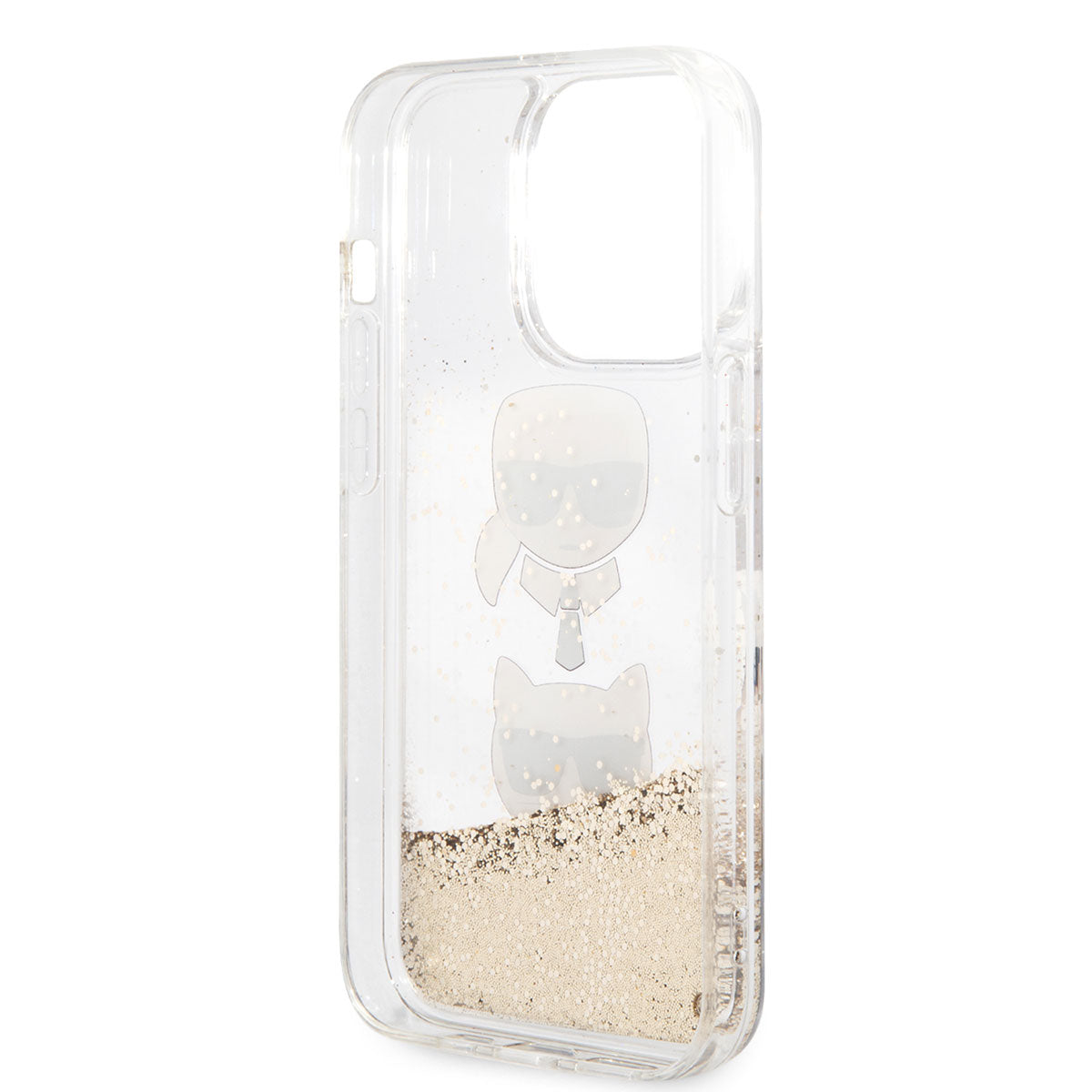 Apple iPhone 14 Pro Max Kılıf Karl Lagerfeld Sıvılı Simli K&C Head Dizayn Kapak Gold