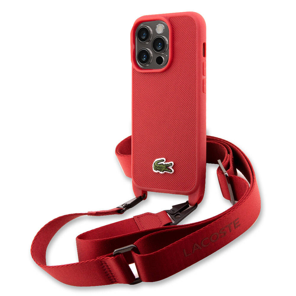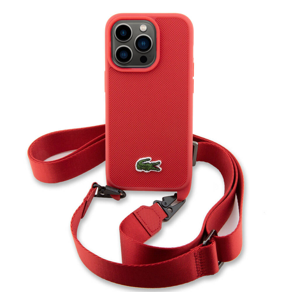 Apple iPhone 14 Pro Max Kılıf Lacoste Orjinal Lisanslı PU Pike Desenli Arka Yüzey Askılı İkonik Timsah Dokuma Logolu Kapak