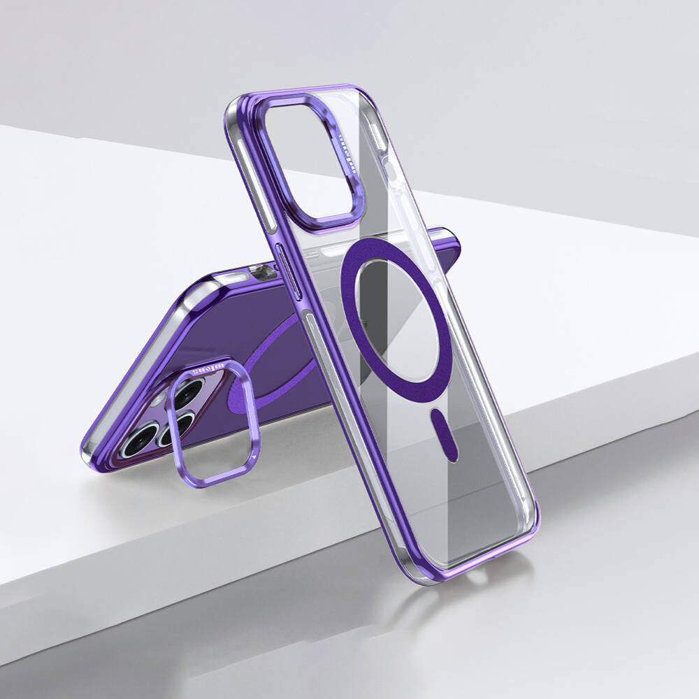 Apple iPhone 14 Pro Max Kılıf M-safe Şarj Özellikli Wlons Standlı Efsane Kapak Mor