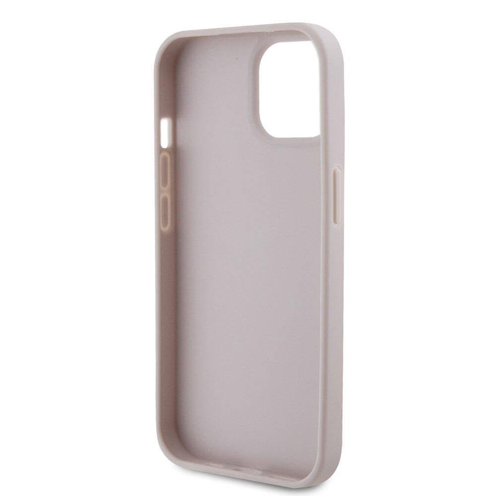 Apple iPhone 15 Kılıf Guess Orjinal Lisanslı PU Deri Taşlı Üçgen Logo 4G Desenli Strass Kapak Pembe
