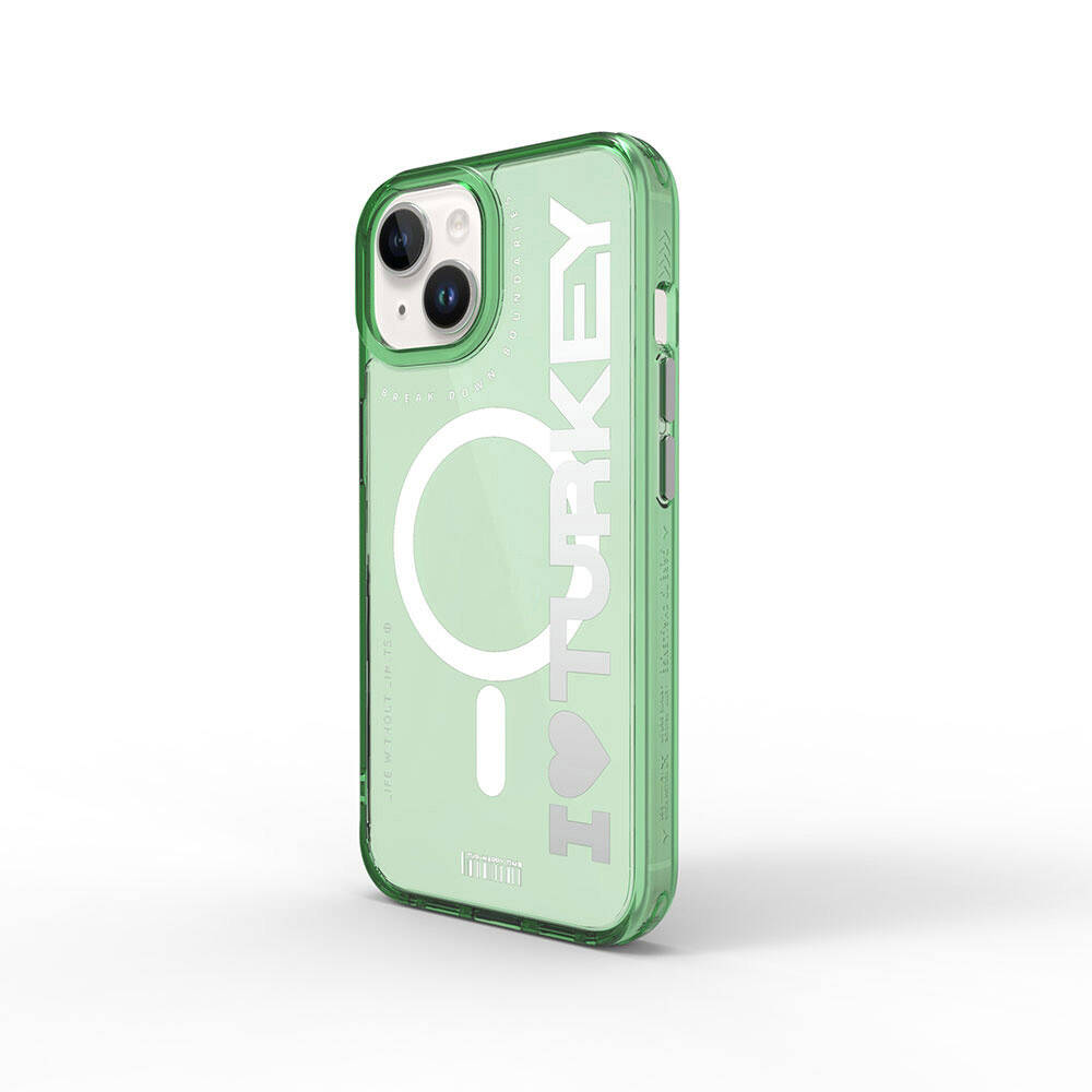 Apple iPhone 15 Kılıf M-safe Şarj Özellikli Transparan Renk Geçişli Wiwu Turkey C Serisi Kapak Yeşil