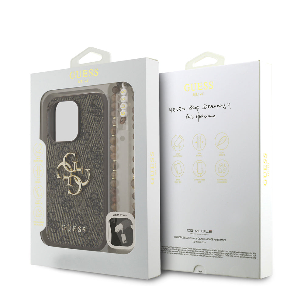 iPhone 15 Pro Kılıf Guess Orjinal Lisanslı PU Deri Bilek Askı İpli Metal Büyük 4G ve Yazı Logolu Kapak