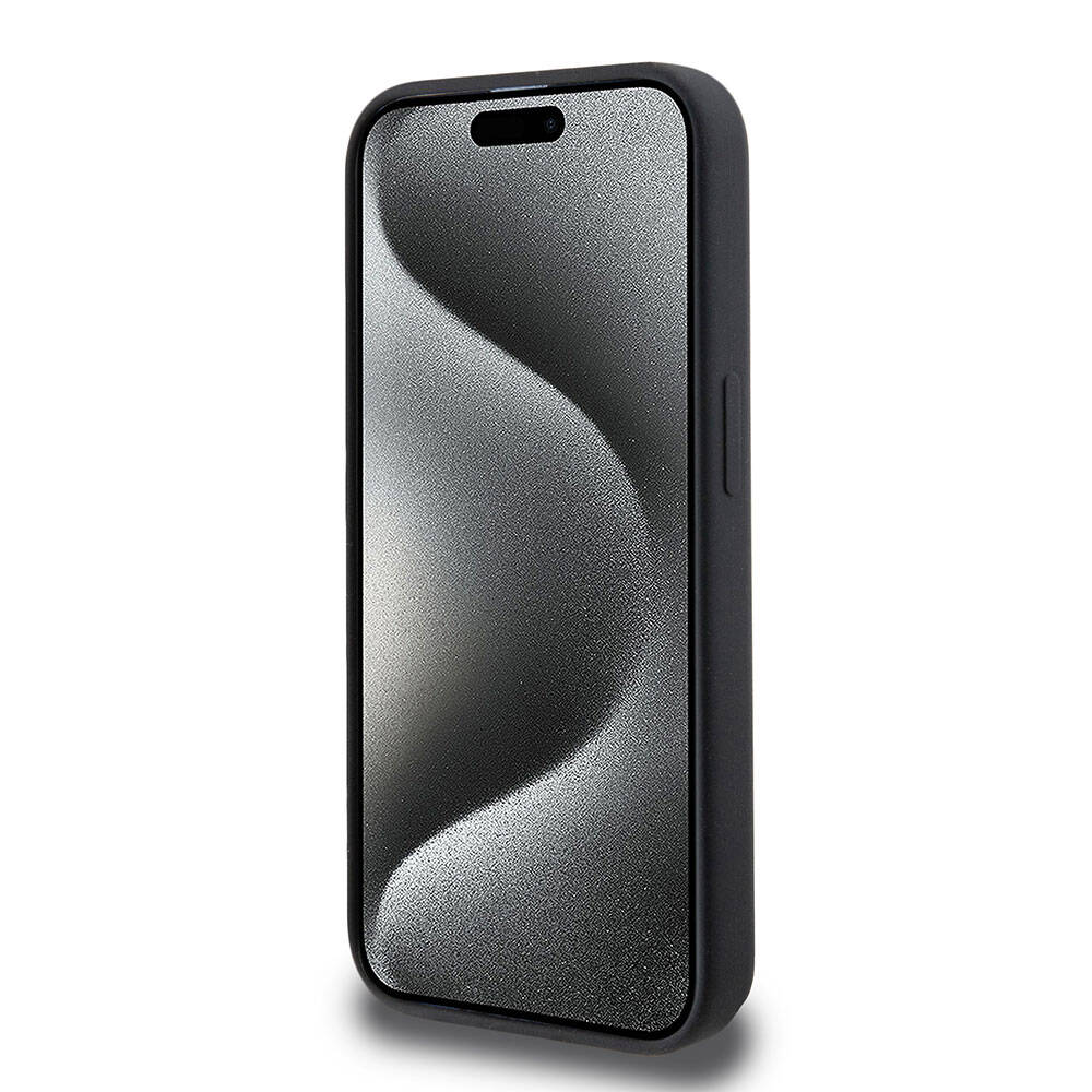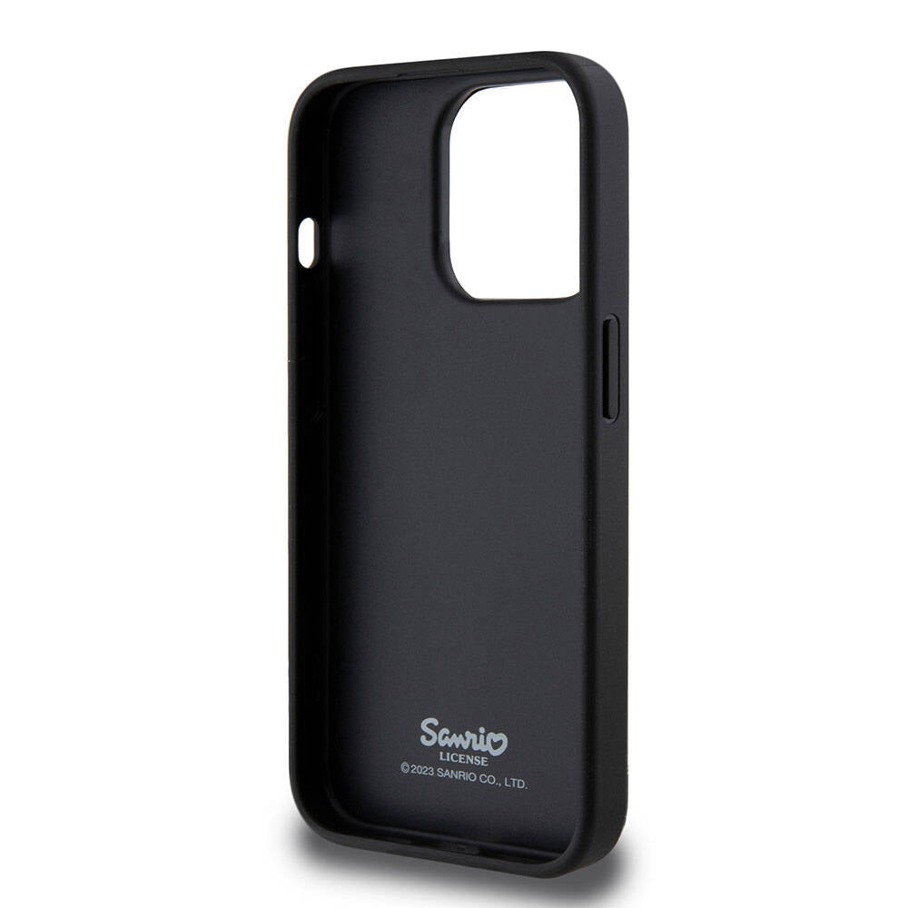 Apple iPhone 15 Pro Kılıf Hello Kitty Orjinal Lisanslı M-safe Şarj Özellikli Kitty Head Deri Kapak Siyah