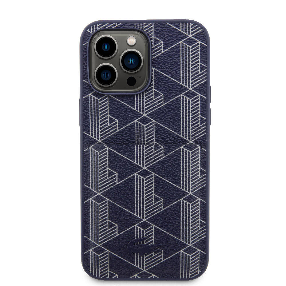 Apple iPhone 15 Pro Kılıf Lacoste Orjinal Lisanslı Magsafe Şarj Özellikli PU Deri Görünümlü Kartlıklı Karışık Monogram Desenli Kapak