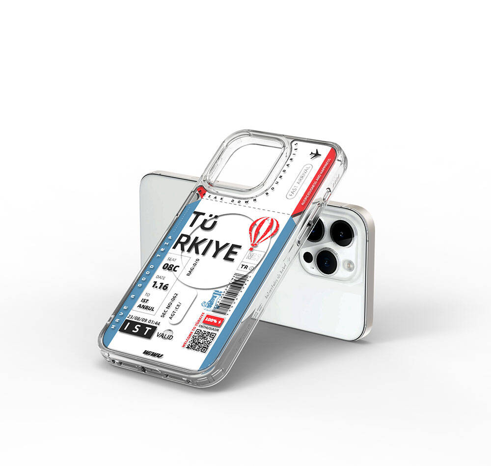 Apple iPhone 15 Pro Kılıf Magsafe Şarj Özellikli Bilet Desenli Wiwu Turkey B Serisi Kapak