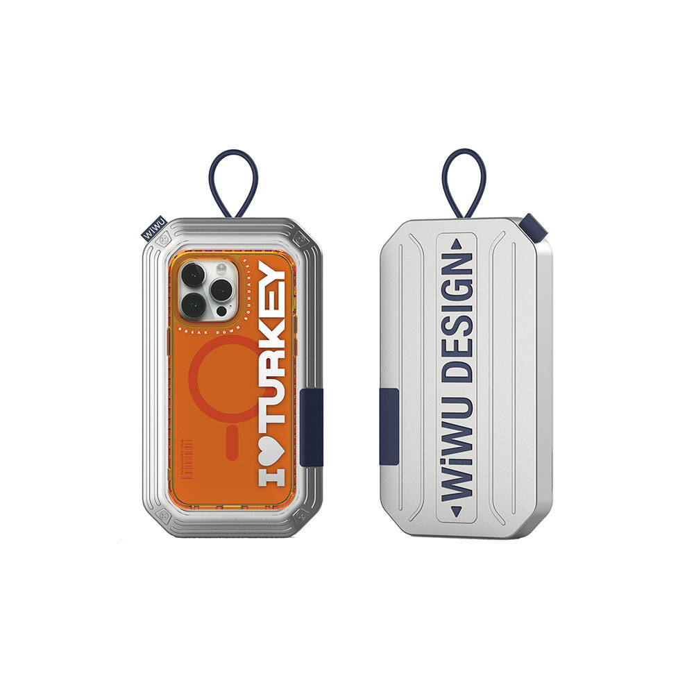 Apple iPhone 15 Pro Kılıf M-safe Şarj Özellikli I Love Turkey Yazı Desenli Wiwu Turkey E Serisi Kapak Turuncu