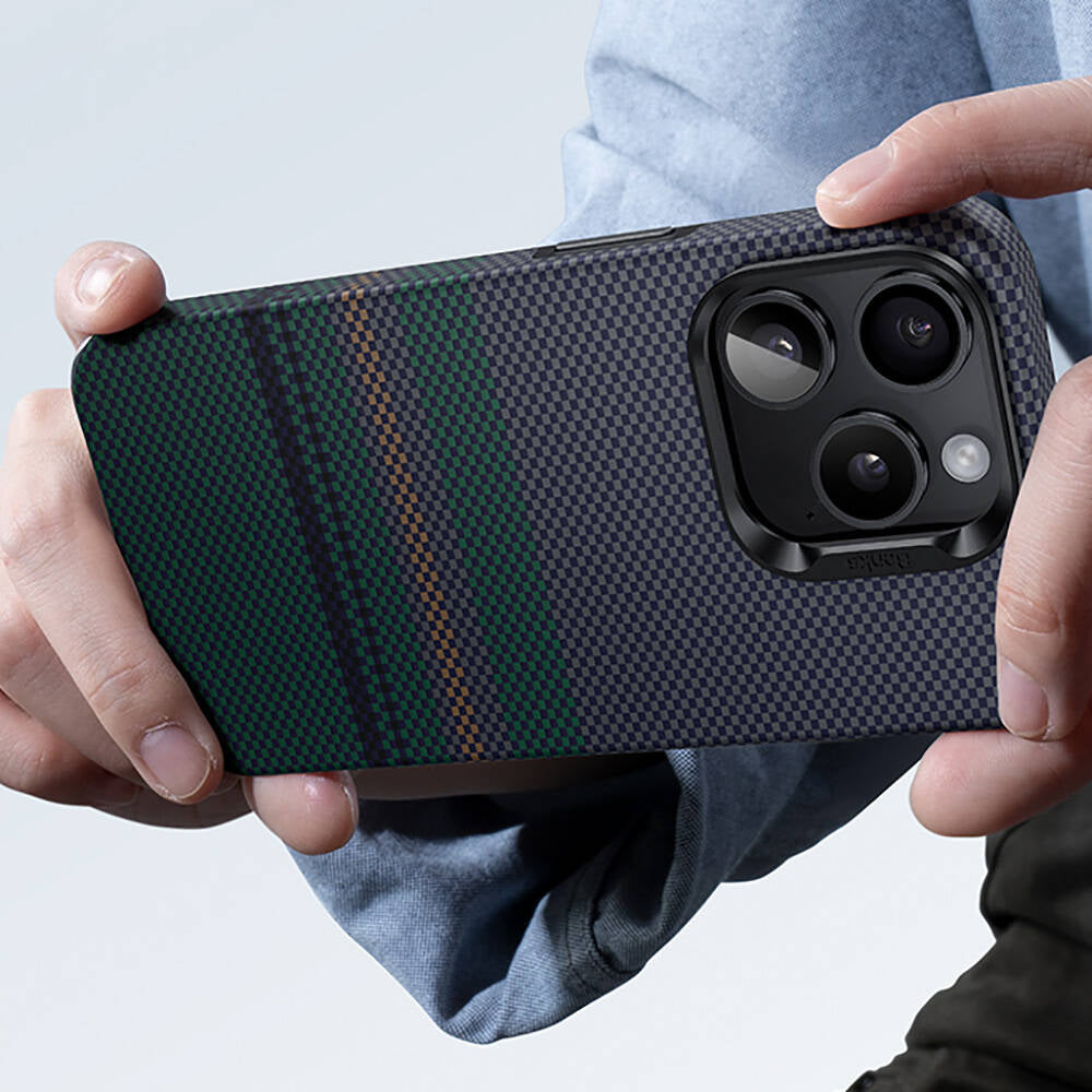 iPhone 15 Pro Kılıf Magsafe Şarj Özellikli Karbon Fiber Tasarımlı Benks Aurora ArmorPro Kevlar Kapak