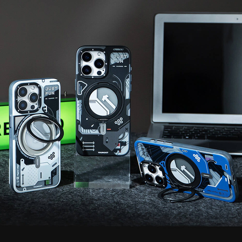 iPhone 15 Pro Kılıf Magsafe Şarj Özellikli Youngkit 360° Standlı Starship Serisi Kapak