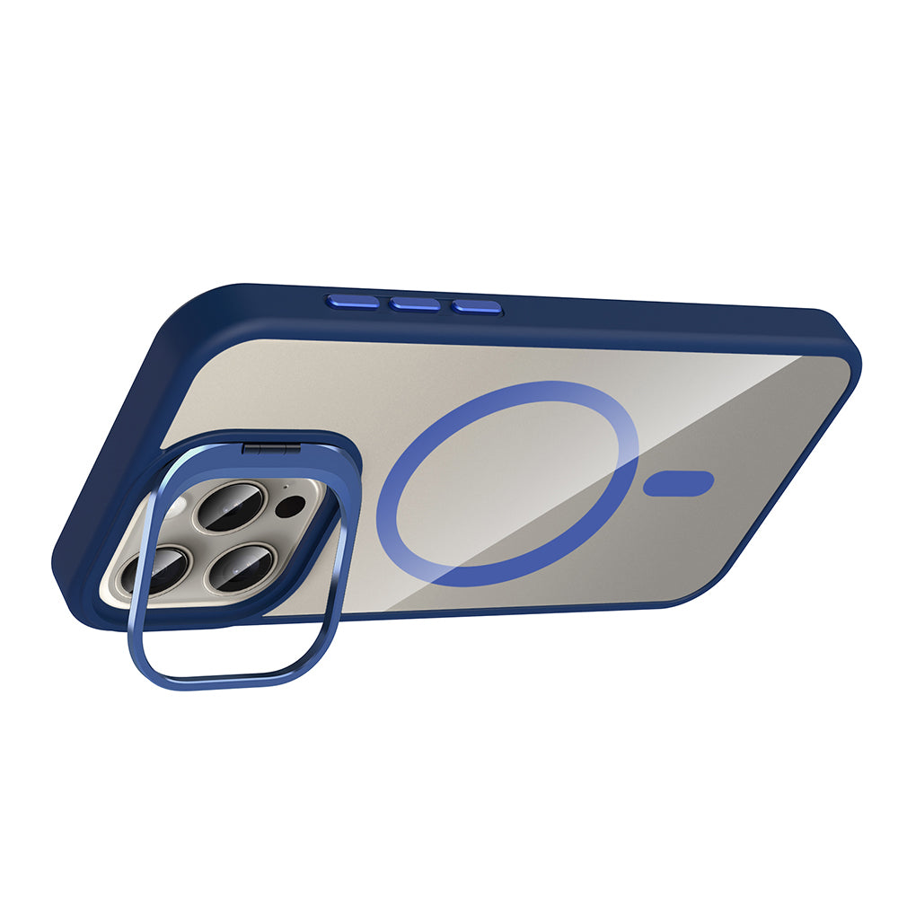 iPhone 15 Pro Kılıf Standlı ve Kamera Lens Hediyeli M-Safe Şarj Özellikli Zore Etro Kapak